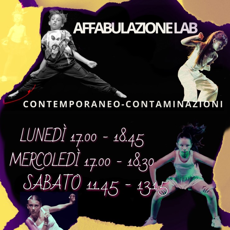 AFFABULAZIONE LAB KIDS, Laboratorio coreografico di Contemporaneo-Contaminazioni, è rivolto invece a bambini e ragazzi con o senza base di danza di età compresa tra i 10 e i 15 anni.