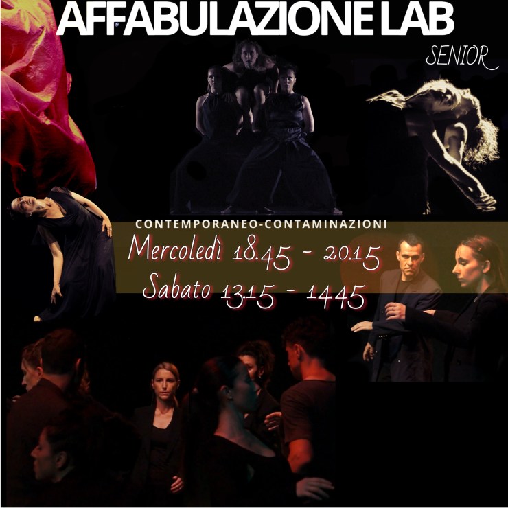 AFFABULAZIONE LAB SENIOR, Laboratorio coreografico di Contemporaneo-Contaminazioni, si rivolge a persone che hanno un background di danza o teatro di movimento o in generale una buona confidenza con il proprio corpo dovuta alla pratica pregressa di sport aerobici. L’età compresa può andare dai 18 ai 40 anni (su valutazione dell’insegnante).